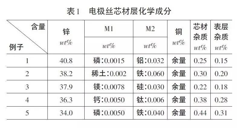 (1)以市場合適的價格采購銅、鋅、磷、稀土、鈉、鉀、鎂、鈣、鋁、硅、錳、鈦、鉻、鐵原材料,經化學分析合格后,開始配料。電極絲芯材層化學成分如表1所示。